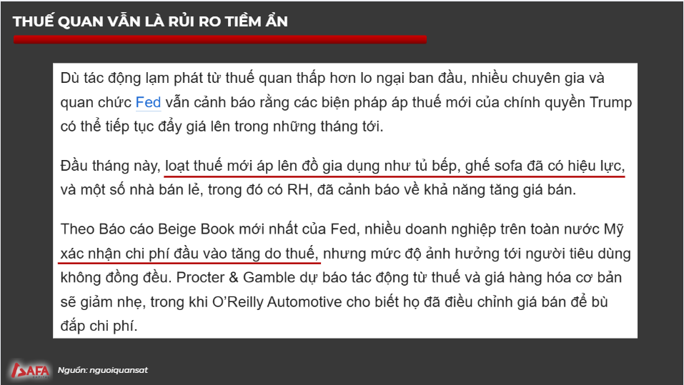 Thuế quan vẫn rủi ro tiềm ẩn tác động đến lạm phát và thị trường