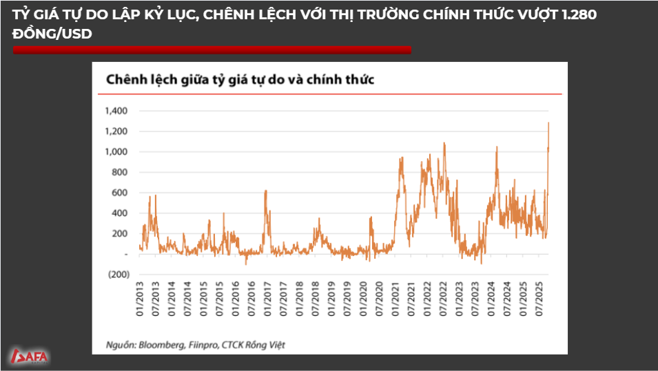 Chênh lệch giữa tỷ giá tự do và chính thức ngày càng tăng