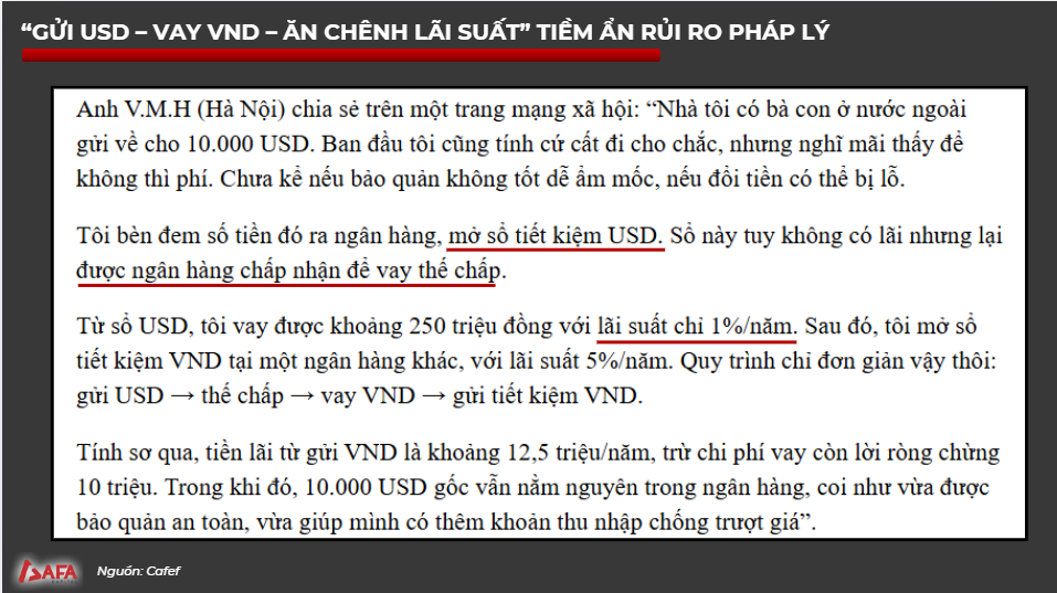 1 trường hợp “Gửi USD – Vay VND – Ăn chênh lãi suất” với nguồn USD kiều hối được chia sẻ