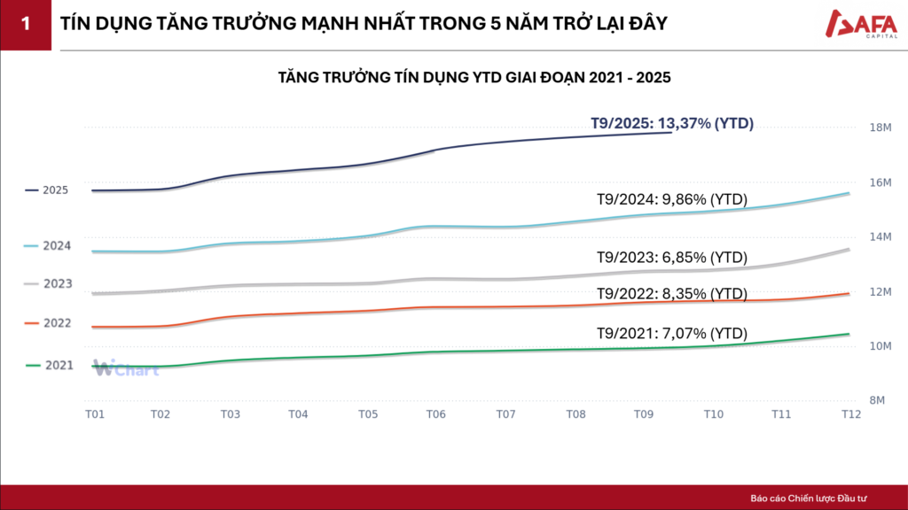 Tốc độ tăng trưởng tín dụng tính tính tới tháng 9 2025 là nhanh nhất trong 5 năm trở lại