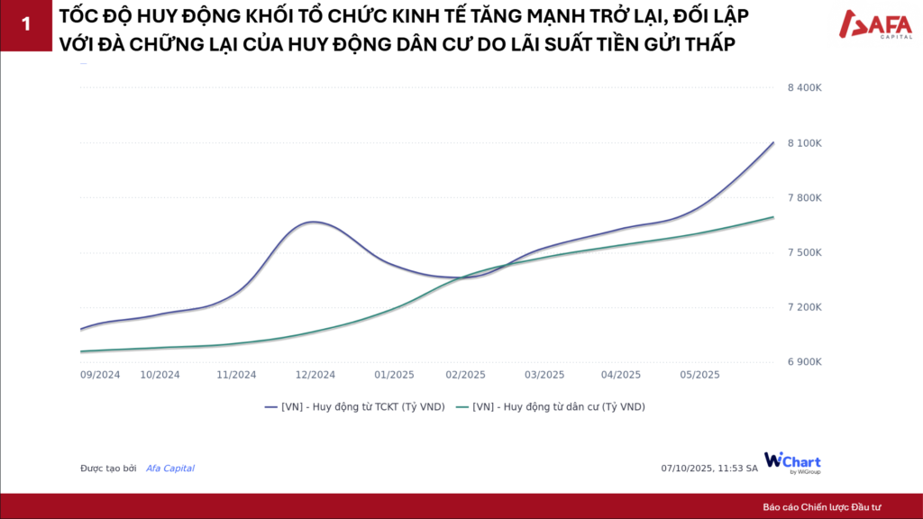 Tốc độ huy động dân cư tăng chậm hơn so với các tổ chức kinh tế, chỉ ra rằng nguời dân đang cân đối giữa đầu tư vào tài sản khác và gửi tiền ngân hàng