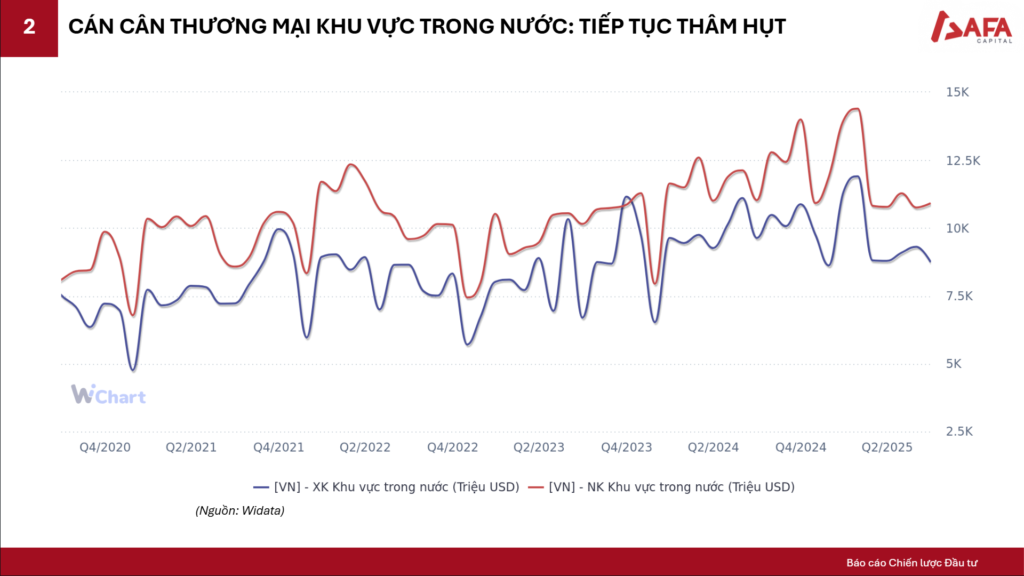 Cán cân thương mại khu vực trong nước có mức thâm hụt tăng so với năm trước.