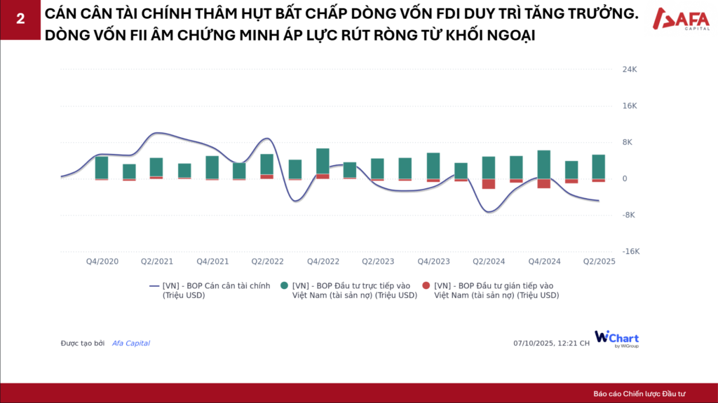 Cán cân tài chính, dòng vốn FII, xu hướng rút ròng khối ngoại vẫn rất mạnh.