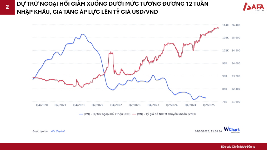 Khi dự trữ ngoại hối giảm, tỷ giá tăng nhanh. Áp lực về mặt lượng của tỷ giá được kỳ vọng duy trì trong cuối năm