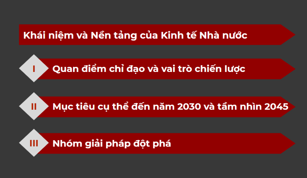 Nền kinh tế nhà nước vận hành dựa trên hai động cơ: năng lực quản trị và dẫn dắt của khu vực nhà nước, kết hợp với sức sáng tạo và hiệu quả của kinh tế tư nhân. Khi hai động cơ này đồng bộ, nền kinh tế có thể phát triển bền vững, đạt mục tiêu 2030, đồng thời nâng cao năng lực cạnh tranh quốc gia.