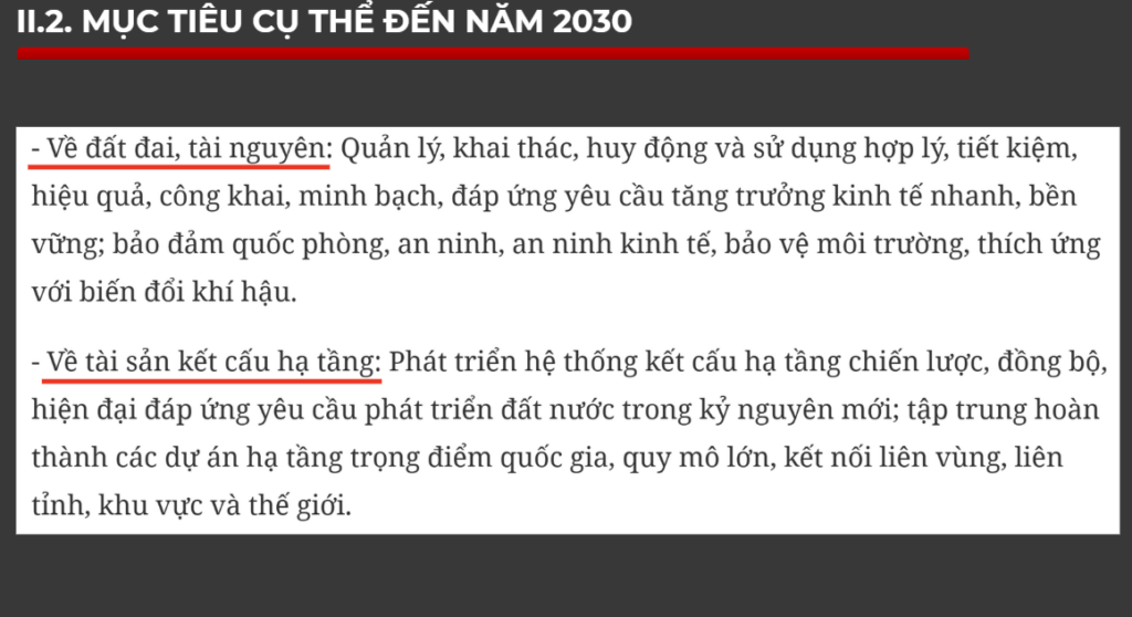 NQ79 khẳng định rõ: nguồn lực quan trọng bậc nhất của nền kinh tế Việt Nam không phải vốn, mà là đất đai và tài nguyên. Trong đó bao gồm tài nguyên đất, khoáng sản, tài nguyên biển, không gian phát triển, và quyền tiếp cận các yếu tố này. Đây chính là “tài sản nền” quyết định năng lực tích lũy dài hạn của quốc gia.