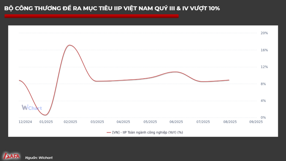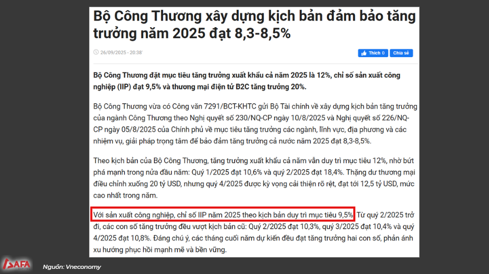 Để đạt mục tiêu tăng trưởng GDP ở mức 8,3%–8,5%, chỉ số sản xuất công nghiệp (IIP) cần duy trì quanh mức 9,5% cho cả năm và vượt 10% trong các quý II, III và IV. Tuy nhiên, số liệu thực tế cho thấy IIP mới chỉ dao động quanh mức hơn 8%, thấp hơn đáng kể so với mức cần thiết để hiện thực hóa mục tiêu tăng trưởng