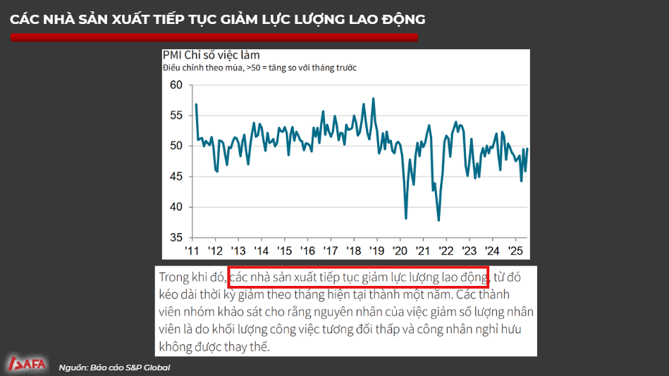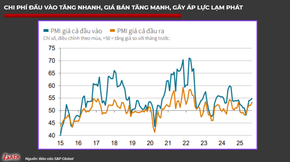 Số lượng đơn đặt hàng mới tăng nhẹ là tín hiệu tích cực. Tuy nhiên, sự sụt giảm liên tiếp của việc làm cho thấy mức độ thận trọng của các nhà quản trị, phản ánh tâm lý chưa thực sự lạc quan trong việc mở rộng quy mô lao động. Bên cạnh đó, áp lực lạm phát tiếp tục gia tăng, đặc biệt thể hiện qua chi phí đầu vào, đặt ra thách thức đáng kể đối với hoạt động sản xuất và quản trị chi phí của doanh nghiệp