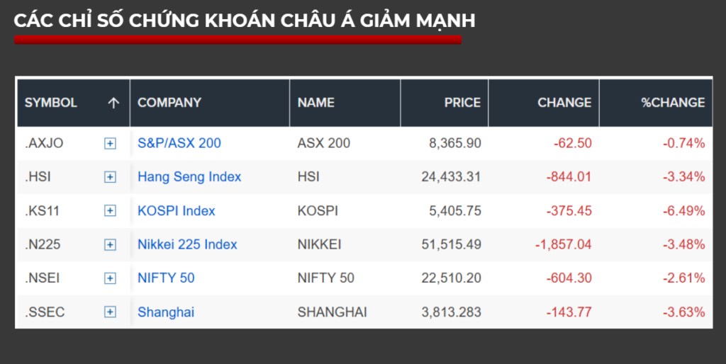 • Chứng khoán châu Á và Việt Nam lao dốc (VN-Index giảm sâu với hàng trăm mã giảm sàn)