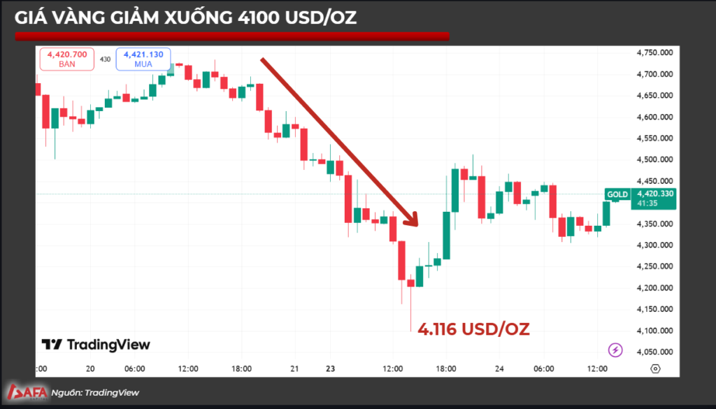 • Giá vàng điều chỉnh mạnh trước áp lực chốt lời