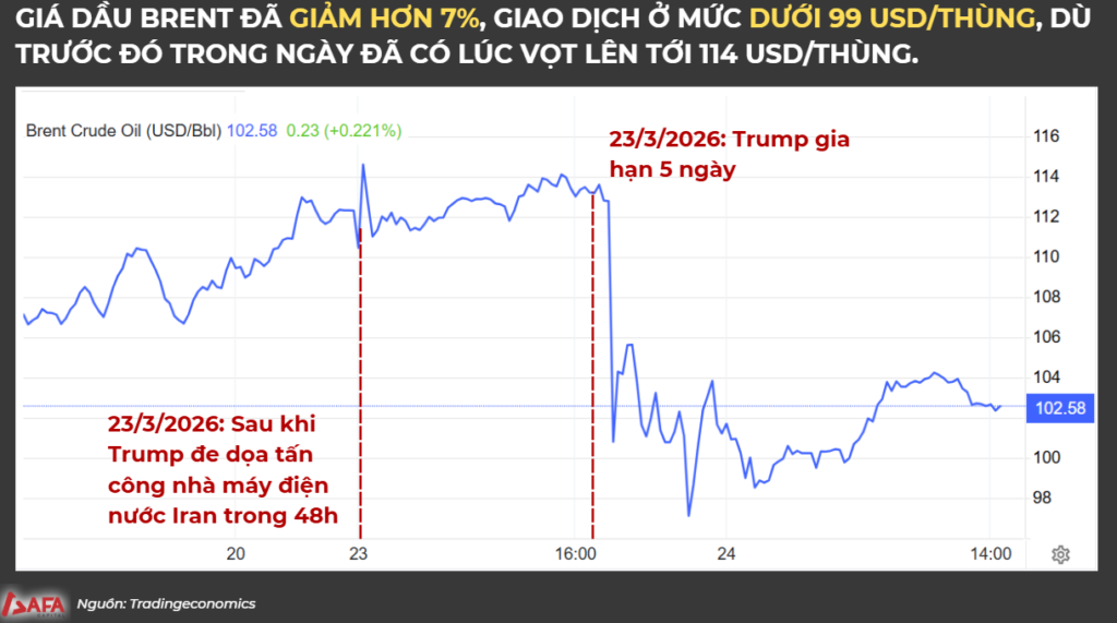 • Giá dầu nhanh chóng giảm từ vùng đỉnh về dưới 100 USD