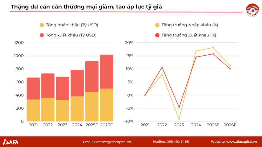 Dù tỷ giá ngắn hạn đang giảm nhờ lãi suất, nhưng áp lực từ cán cân thương mại (nhập khẩu tăng phục vụ sản xuất hoặc tiêu dùng cuối năm) vẫn là yếu tố cần theo dõi. Nếu thặng dư thương mại mỏng đi, nguồn cung USD thực tế sẽ giảm, có thể gây áp lực trở lại trong tương lai.