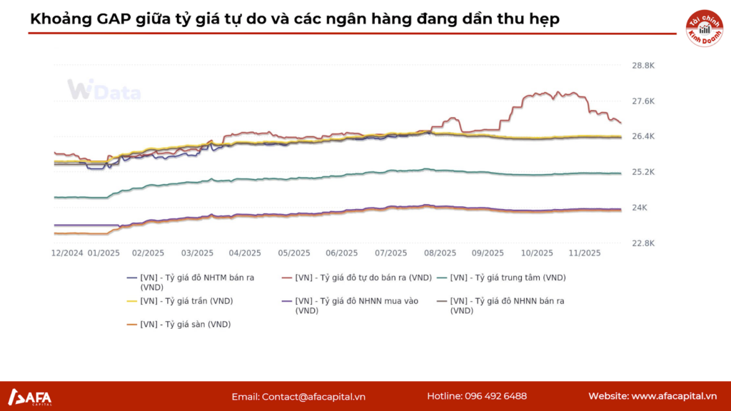 Khoảng cách (Gap) giữa tỷ giá chợ đen và tỷ giá ngân hàng đang thu hẹp đáng kể. Điều này cho thấy thị trường tự do không còn quá “nóng” và dòng vốn đầu cơ đang rút lui, giúp thị trường ngoại hối trở nên ổn định và minh bạch hơn.