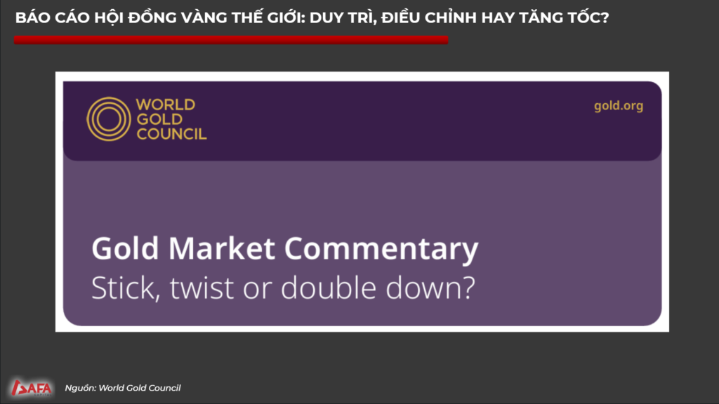 Đánh giá triển vọng, báo cáo của Hội đồng Vàng Thế giới cho thấy nhận định về sự điều chỉnh nhanh chóng (“twist”) hoặc khả năng tăng tốc đầu tư (“double down”) vào thị trường vàng