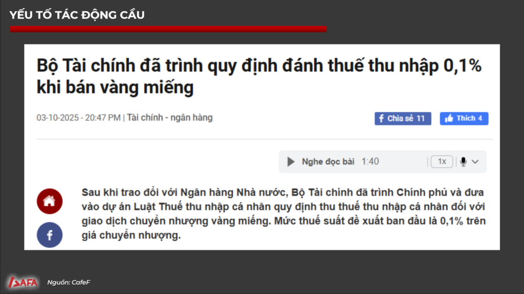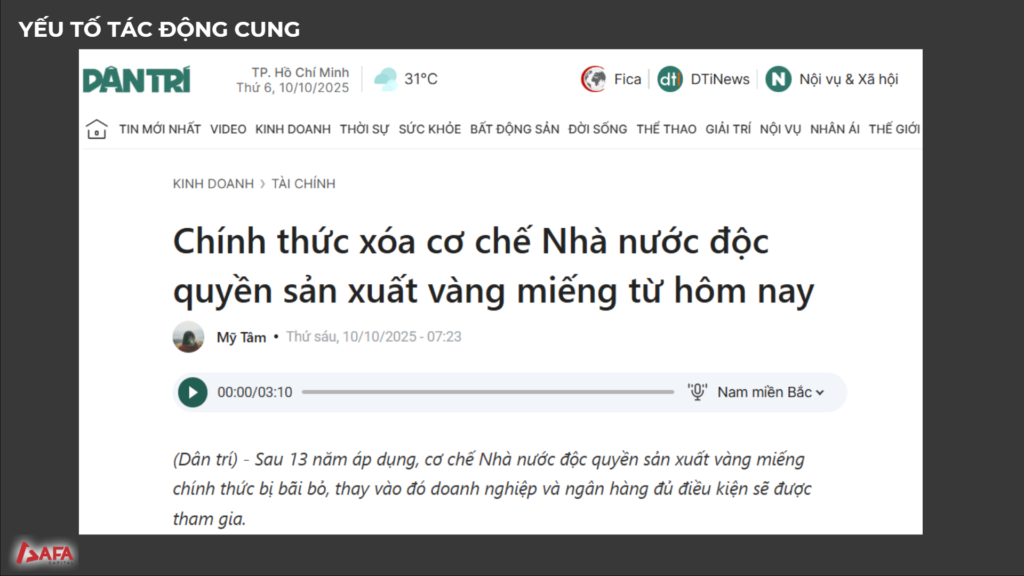 Nhu cầu đầu tư vàng của nhà đầu tư cá nhân đang tăng mạnh do lãi suất huy động ngân hàng duy trì ở mức thấp (5-6%) và các kênh đầu tư khác gặp khó khăn hoặc rào cản vốn lớn