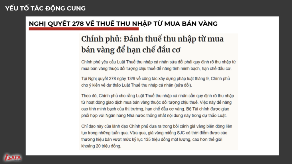 Để phân tích vàng một cách toàn diện, coi vàng là một loại hàng hóa do đó cần phải phân tích đồng thời các yếu tố cơ bản như nguồn cung, nhu cầu, giá vàng thế giới, tỷ giá đô-đồng và lượng tiêu thụ tại Việt Nam
