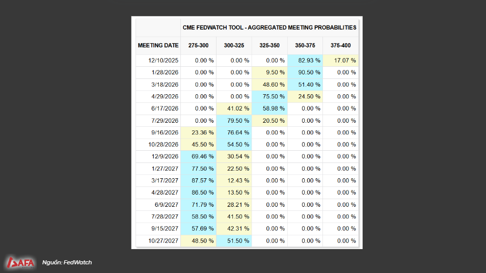 Sau cuộc họp, xác suất giảm lãi suất tăng lên sau khi các số liệu của thị trường được cập nhật