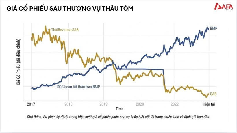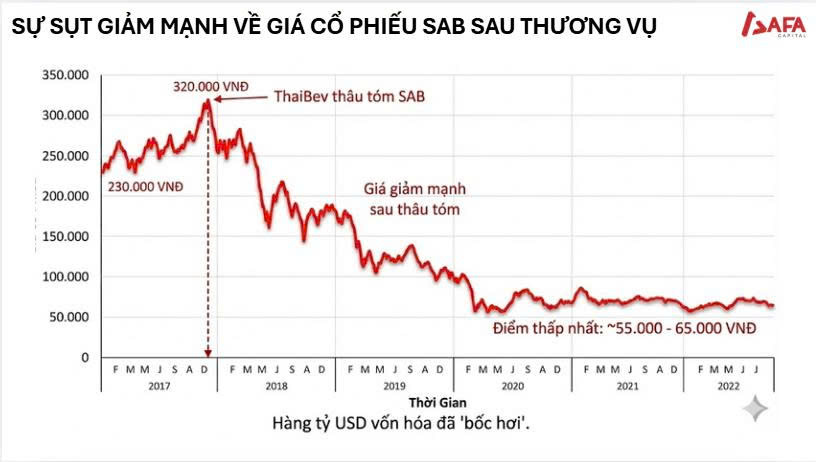 Giá cổ phiếu Sabeco sau đó giảm mạnh vì nhiều yếu tố: định giá quá cao, không thực hiện được kế hoạch IPO mảng bia, Nghị định 100 về nồng độ cồn, và ảnh hưởng của Covid cùng suy thoái. Đây là một nước cờ bắt buộc của ThaiBev. ThaiBev đã chấp nhận “lỗ ngắn, thắng dài” để sở hữu một tài sản chiến lược không thể thay thế và định hình lại bản đồ cạnh tranh.