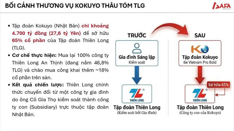 Ngày 05/12, Tập đoàn Kokuyo (Nhật Bản) đã chính thức công bố kế hoạch thâu tóm quyền kiểm soát CTCP Tập đoàn Thiên Long (TLG).