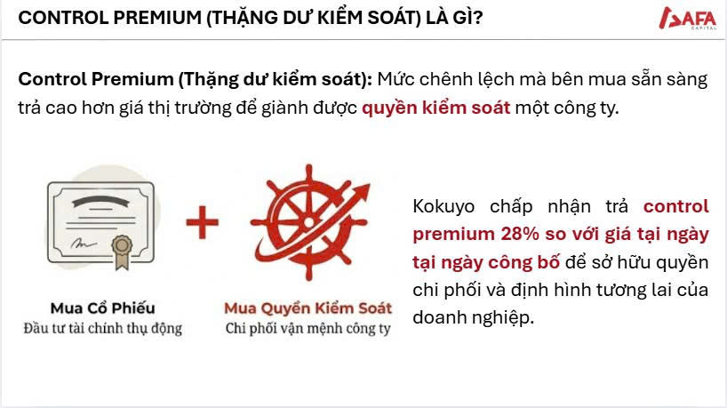 Lí do KOKUYO chấp nhận trả cao hơn thị giá trên sàn chứng khoán tới 25% là do Control Premium
